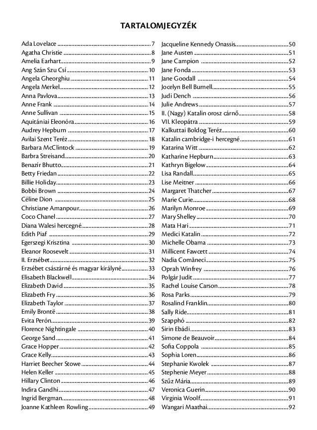 Különböztek egymástól, volt köztük uralkodó, tudós, író, költő, sportoló, apáca, politikus és divatdiktátor, azonban valamennyiükben ott volt egy fontos és közös vonás: megállták helyüket a férfiak uralta világban.